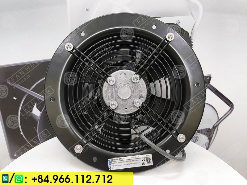 EBMPAPST W2D200-CA02-01, AC Fans AC Axial Fan 230/400V, Round fan size Φ200mm, 53/70W, 2800/3150RPM, 800/910m3/h, IP44, 7-WIRE, fan for cabinet, ups,…